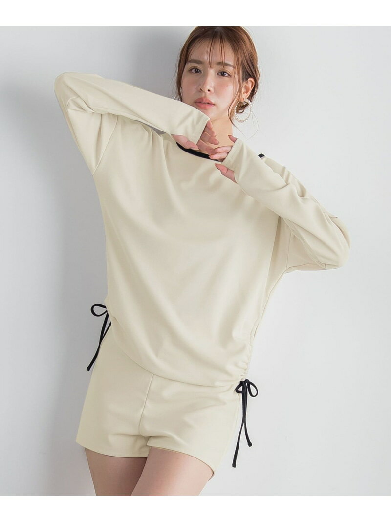 VICKY(ビッキー)【ラッシュガード】長袖プルオーバー>配色デザインと脇のドローストリングが目をひくデザインラッシュガード。