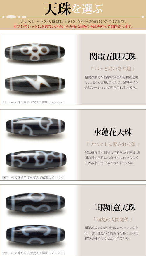 天珠にはそれぞれの意味があり、アクセサリーの色やデザインから感じ取れるイメージによって 選ばれております。