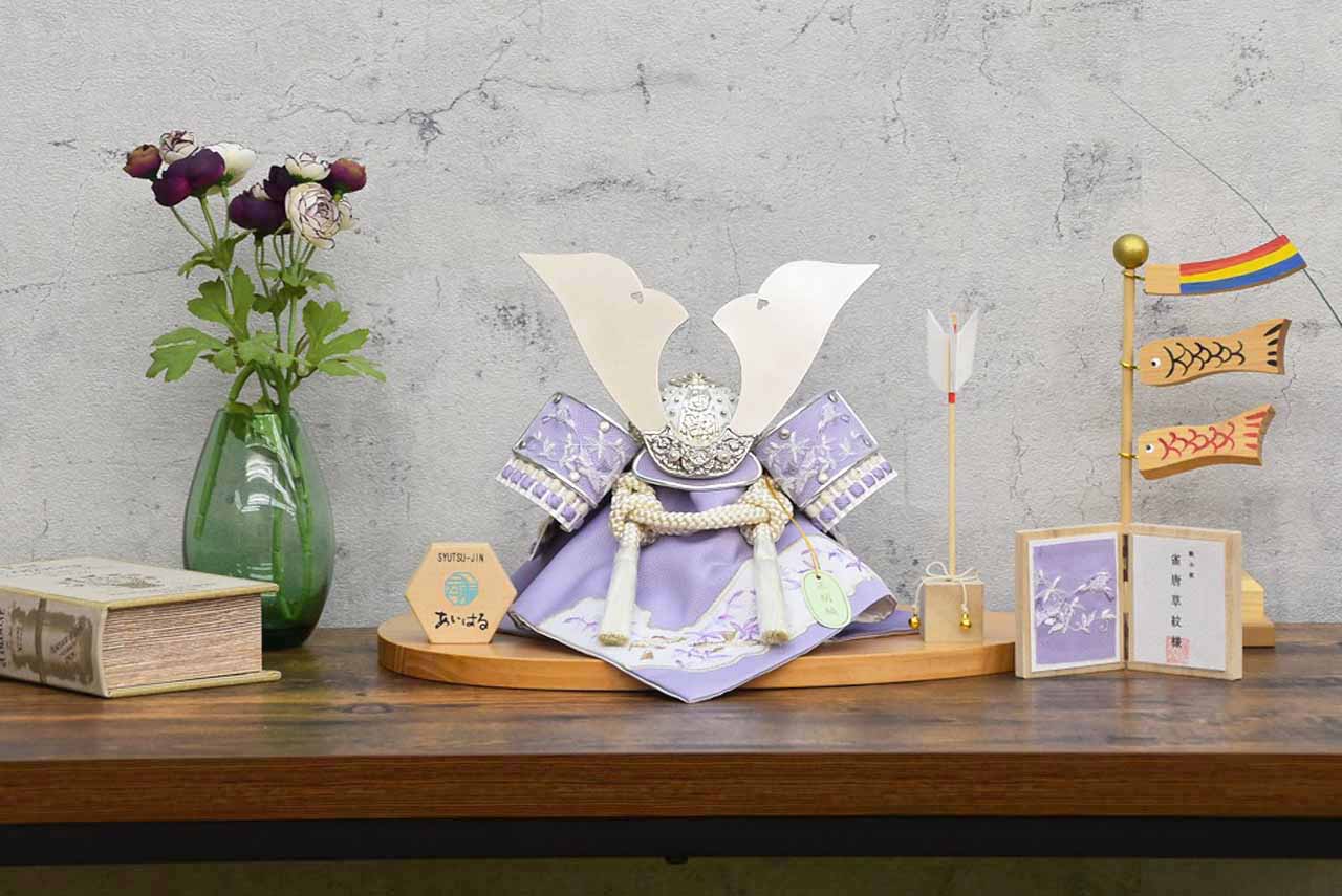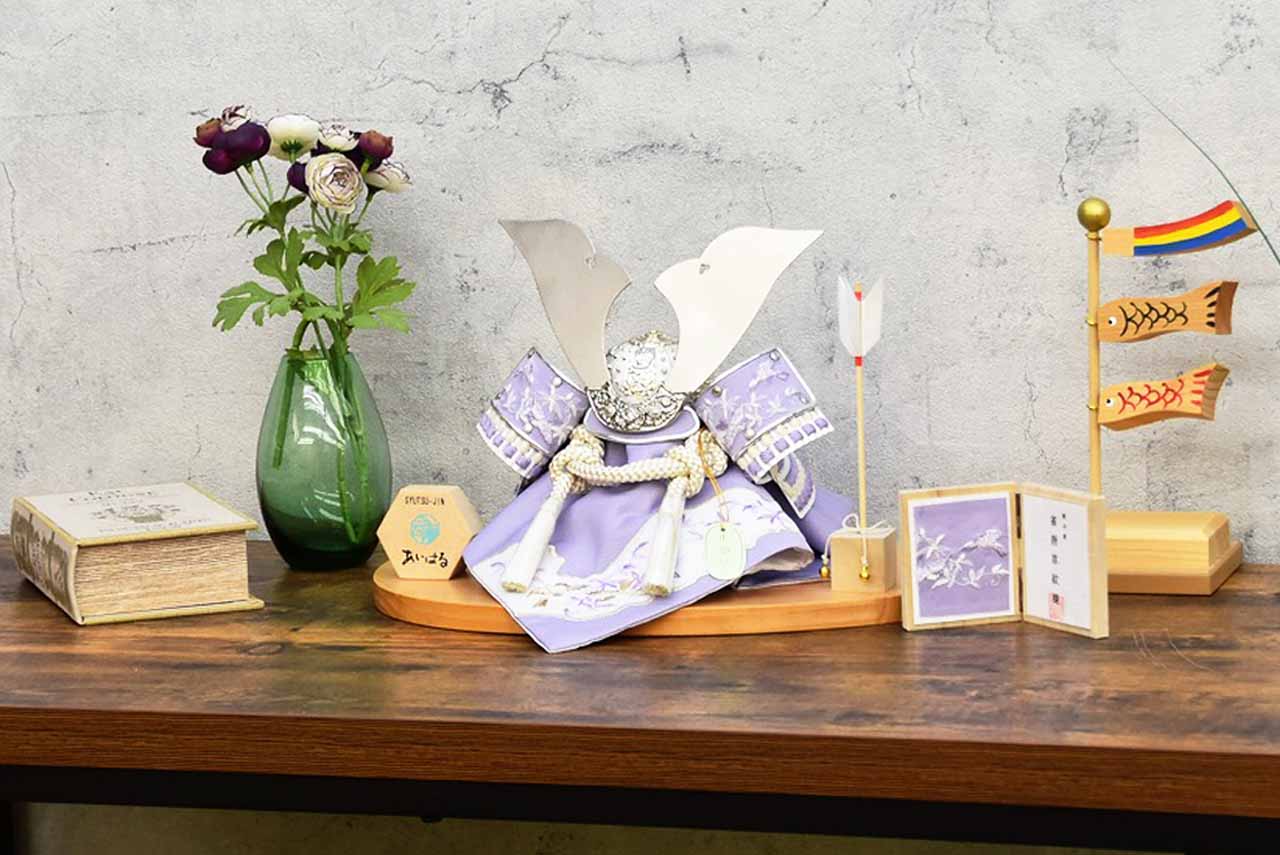 ■ナチュラルカラーの飾台に、あいはるオリジナル兜がおしゃれですね。